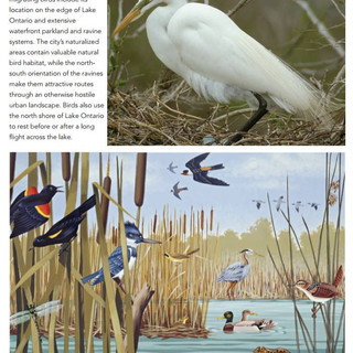 一入步道,我就被一塊石碑上書「Toronto Bird Flyways」吸睛,返家後上網一查,方知多倫多政府在 2004年選出13 個「護鳥計畫」重點站,屬於Milne Hollow 版圖的「Charles Sauriol 自然保育區」即列為一站。多倫多是北美洲候鳥南飛四大「航線」之一「大西洋飛行線」的中繼站,安大略湖以北的溪谷更是候鳥越過大湖長途飛行前的最後補給站,為此,多倫多政府歷年來在溪谷間廣植利於候鳥覓食、棲息及繁殖的樹種及花草,希望這 400 種鳥類均能年年歸來,讓加拿大最多人口的大城多倫多能生態平衡,增添自然生趣。下面是多倫多政府提供的鳥類識別手冊,以圖文詳列候鳥特徵及政府的護鳥計畫,非常值得瀏覽: http://www1.toronto.ca/City%20Of%20Toronto/Parks%20Forestry%20&%20Recreation/02Parks%20and%20Trails/Trails/Files/pdf/B/Birding-in-Toronto.pdf 兩公里步道沿溪而築,溪流的一邊是葉已落盡的蕭索枝幹,一邊是車水馬龍的 Don Valley Parkway 高速公路,形成尖銳的對比,騎行其間,似乎聽到 Don River 的流水嗚咽,難怪自然主義人士要痛責 DVP 對自然生物的戕害,而急於立法限建及戮力保護公路旁的自然環境。 DVP 高速公路行經此段經常塞車,常見底下有一「彩虹洞」,沒想到今天居然有機會騎進了彩虹洞,鑽進鑽出,別有滋味在心頭。騎行只能到火車鐵橋下,再下去已是窄窄的小徑,只容「步行」,「不行」就只好回頭。鐵道橋下蓋有一「遮天頂」以防止火車行進間墜石傷人,沒想到護欄鐵架上居然懸掛了15 個大小不一的石塊,第一塊的上面刻有1886 字樣,最後一個石塊是1998,難不成這些數字代表的是掉落的年份?饒有趣味。