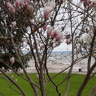 今年春遲又善變,週日氣溫驟變,陰雨綿綿僅四度。我們不想去 High Park 擠人潮賞櫻,遂驅車前往車程一小時的 Burlington Spencer Smith Park 一探櫻花花訊。