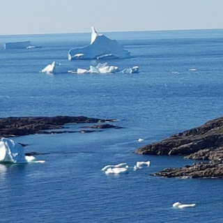 為了趕冰山融化前見此奇觀,我們特地前往最北端的St.Anthony 小鎮過夜。此地冰山源自「Greenland 格陵蘭島」,平均年齡一萬到一萬五千年,經過一年順洋流漂流到此處的「Iceberg Alley 冰山巷」後「壽終正寢」。晶瑩發亮的冰山,有時高達15層樓,在耀眼晴空及蔚藍水面映照下分外奪目,周遭的海面也因底層的冰塊成分而呈淺綠色。 冰山季從每年的4月份開始,今年的冰山尤其多。據當地新聞報導,五月份為止已有 600 多個冰山漂入北大西洋航道,往年要到5月底或6月初才能累積這麼多。風急雨急的天候下,幾座冰山同時「入港」,冰塊堵塞了航道,給當地漁民造成極大困擾,只能困坐碼頭望冰興嘆。 春夏間陽光溫暖,冰山漸融開始縮小,出現巨大裂縫,融化的雪水從裂縫中洶湧流出。如靠近海岸,它們可能會落到海床承受巨大壓力,因為海水不再支撐其重量。落潮通常是最後一擊,導致擱淺的冰山突然破裂,形成巨浪,也可能轉瞬間崩解,發出炮聲般的轟然巨響。 Twinlingate 住一晚後,我們前往Farewell 搭乘渡輪前往Fogo 島住一晚,沒想到被譽為「超級冰船」的 Veteran號自2015年破冰行後一直問題叢生,這艘五千萬美元的渡輪已四度送修,推進器問題致使船期經常延誤長達四五個小時,讓Fogo 和 Change 兩島居民怨聲載道。我們所搭乘的是另艘備用輪,回程時也因救生艇故障而延誤了兩個多小時。